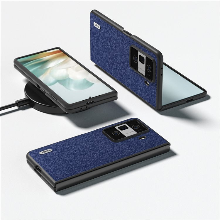 ABEEL For Honor Magic Vs3 5G Case Litchi Texture Genuine Cow Leather+PC Phone Cover - Blue