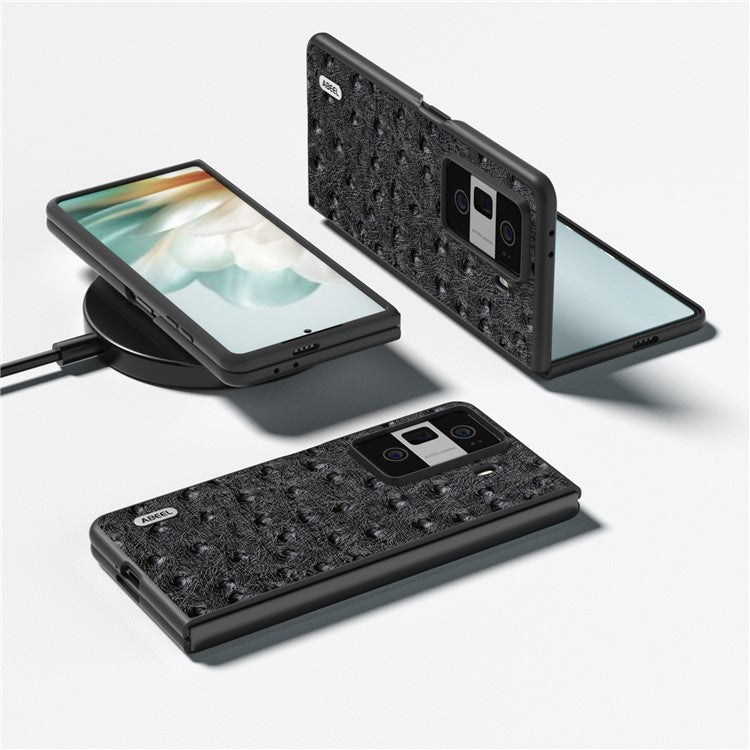 ABEEL For Honor Magic Vs3 5G Case Ostrich Texture Genuine Cow Leather+PC Cover - Black