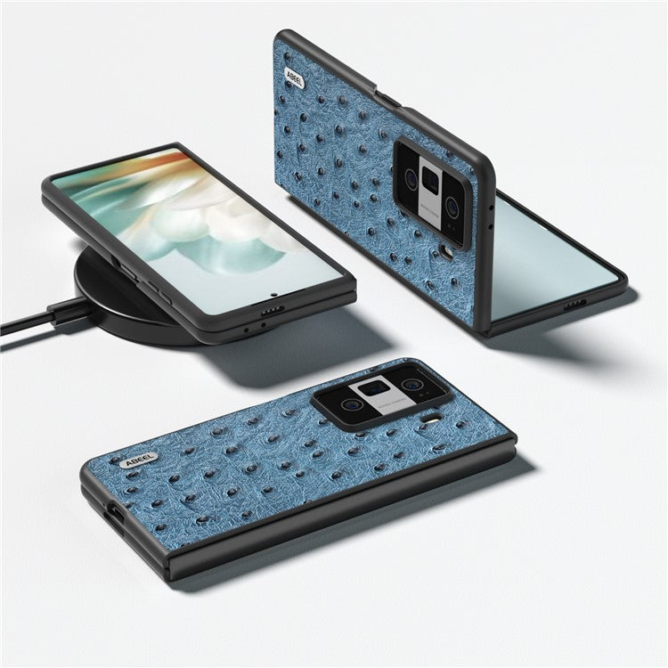 ABEEL For Honor Magic Vs3 5G Case Ostrich Texture Genuine Cow Leather+PC Cover - Blue