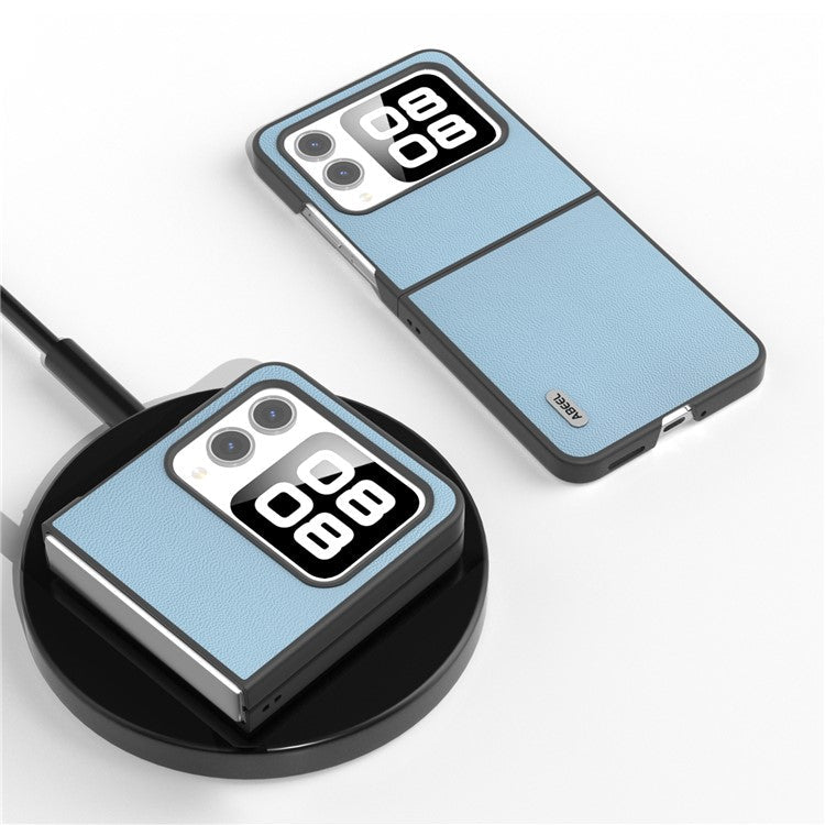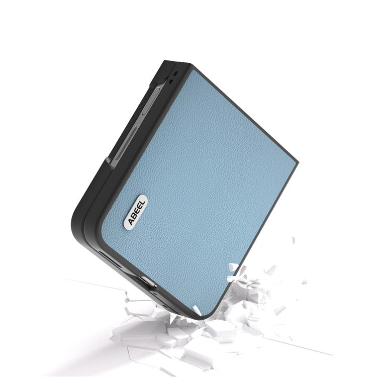 ABEEL For Huawei nova Flip 5G Case Anti-Drop Genuine Cow Leather PC Phone Cover - Sky Blue