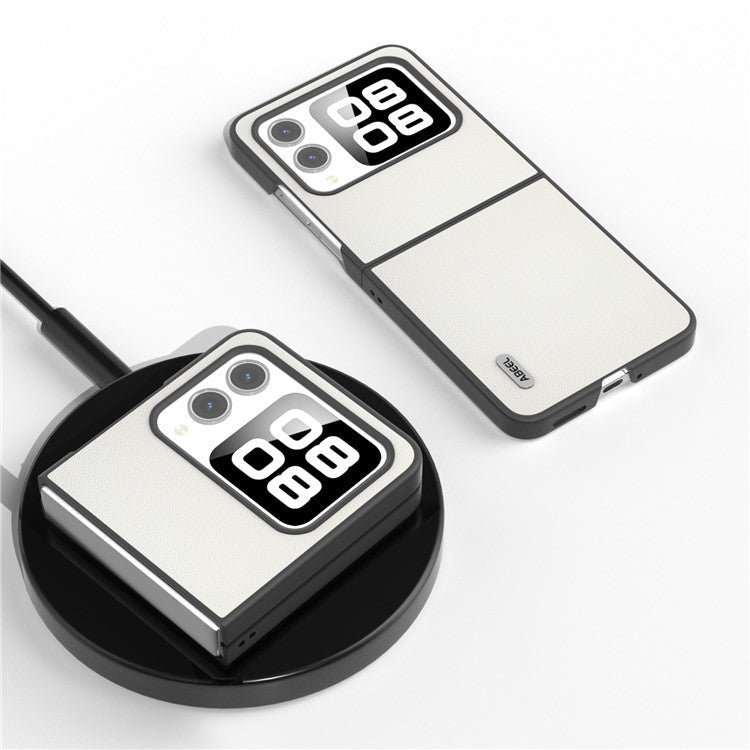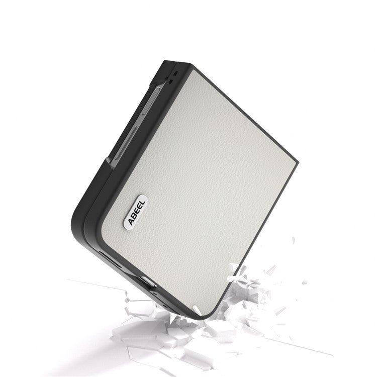 ABEEL For Huawei nova Flip 5G Case Anti-Drop Genuine Cow Leather PC Phone Cover - White