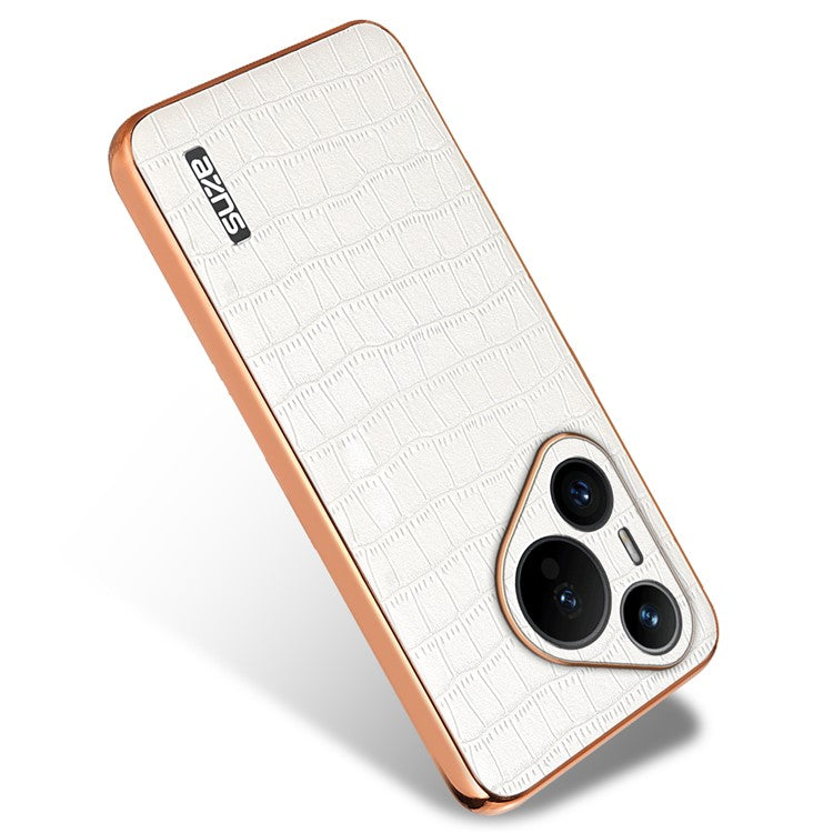 AZNS For Huawei Pura 70 Slim Case Crocodile Texture Leather + TPU Phone Cover - White