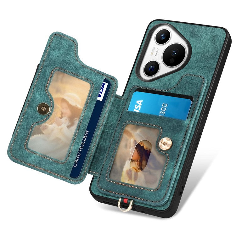 D4 For Huawei Pura 70 Case RFID Blocking Handbag Leather+TPU Phone Cover Card Slots, Ring Holder - Green
