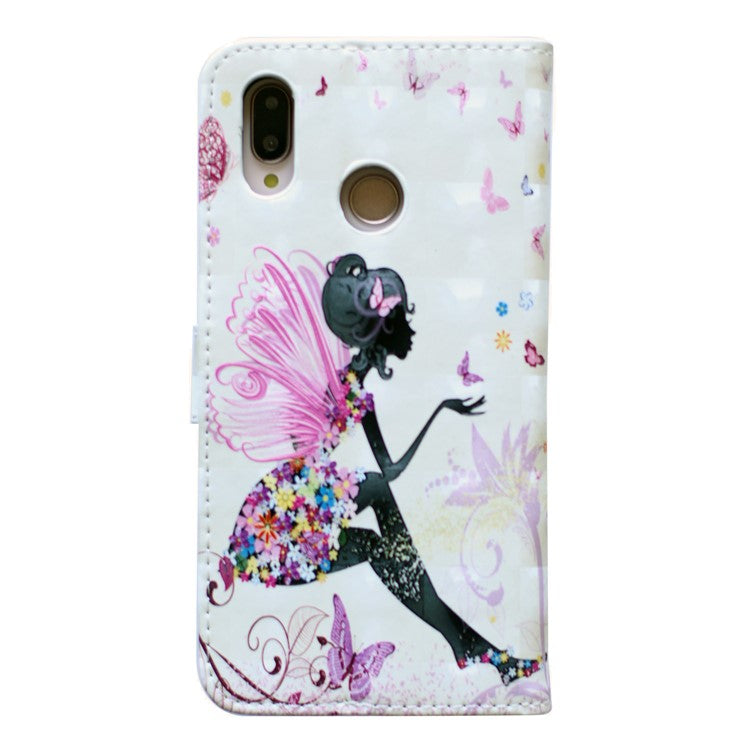 Embossing Pattern PU Leather Protective Case with Stand for Huawei P20 Lite / Nova 3e (China) - Butterfly Girl
