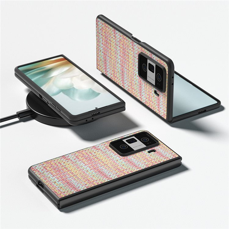 For Honor Magic Vs3 5G Case Leather+PC Phone Cover Plaid Texture - Pink