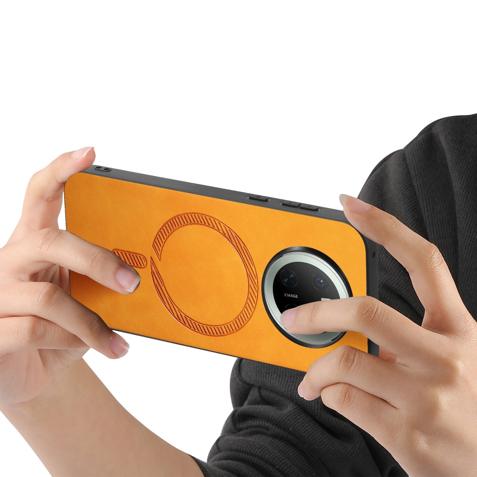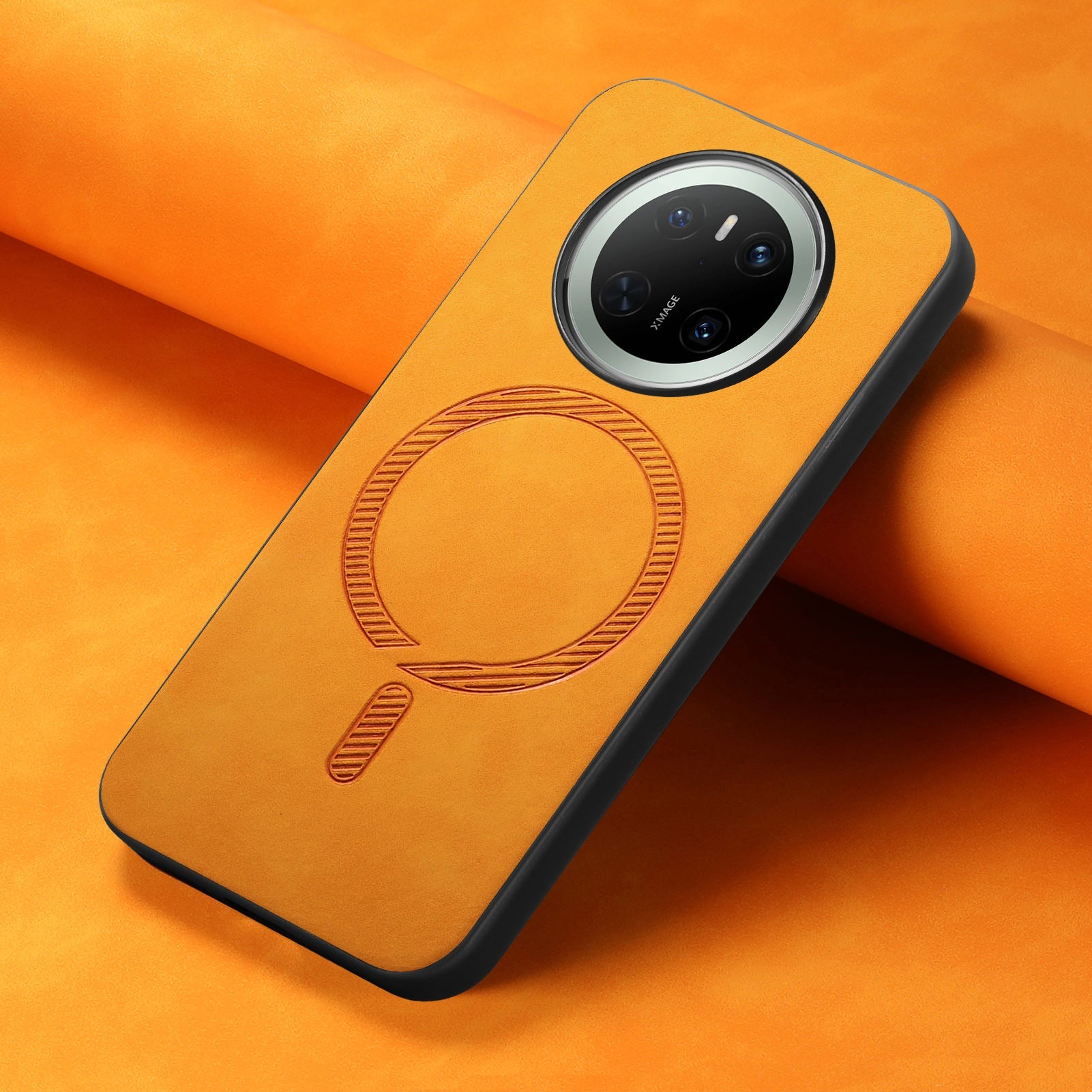 For Huawei Mate 70 Leather Back Case Compatible with MagSafe Skin-touch Phone Cover - Yellow