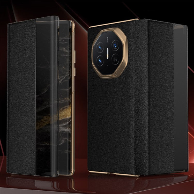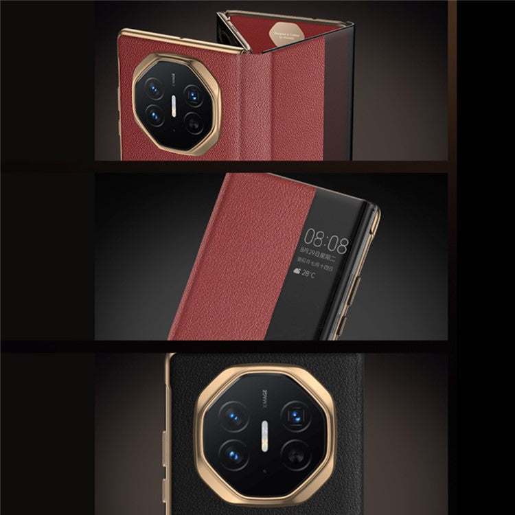 For Huawei Mate XT Ultimate Case View Window PU Leather+PC Phone Cover - Red
