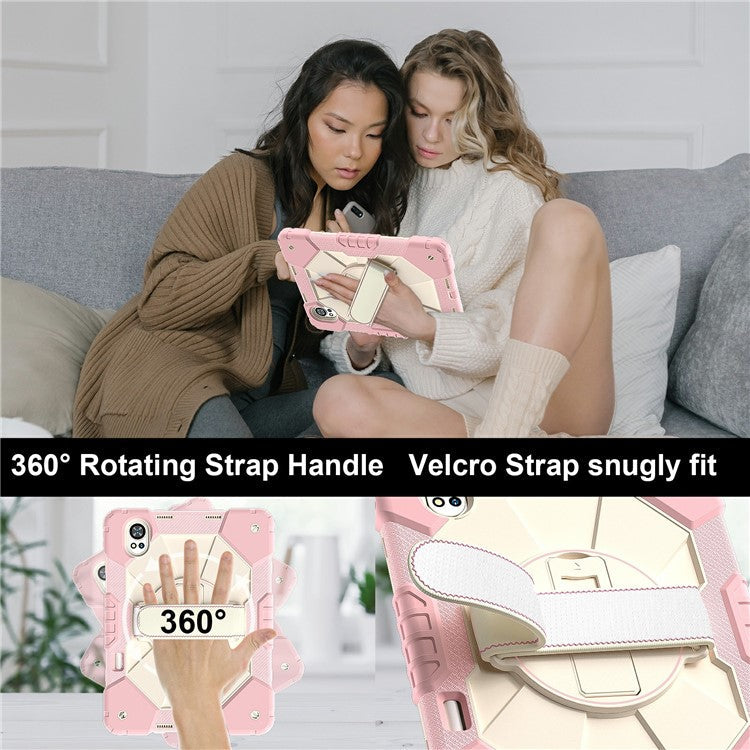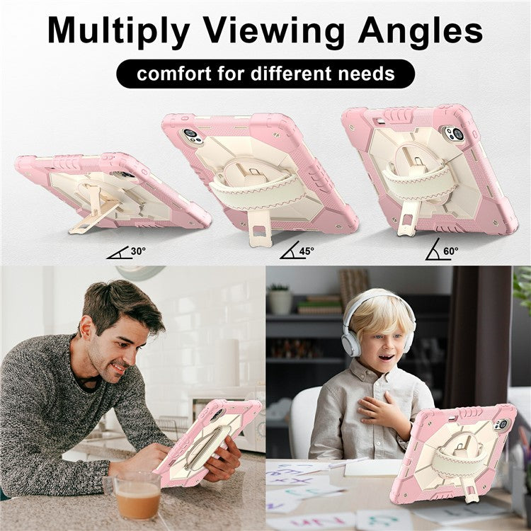 For Huawei MatePad Air (2024) Case Kickstand Silicone+PC Tablet Cover with Shoulder Strap - Rose Gold / Grey