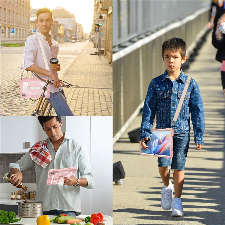For Huawei MatePad SE 11 2024 Tablet Case Silicone+PC Shockproof Cover with Kickstand Shoulder Strap - Rose Gold