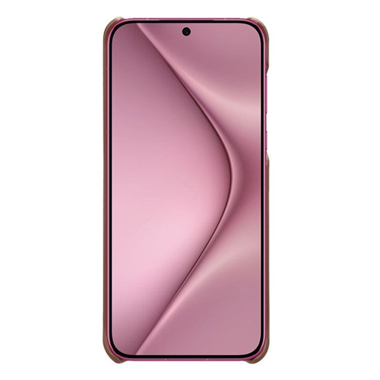 For Huawei Pura 70 Case Calf Texture Leather Coated Hard PC Phone Cover - Brown