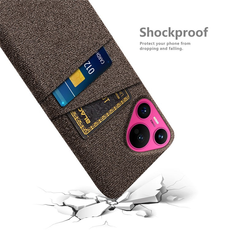 For Huawei Pura 70 Case Card Holder Cloth Texture Hard PC Phone Back Cover - Brown