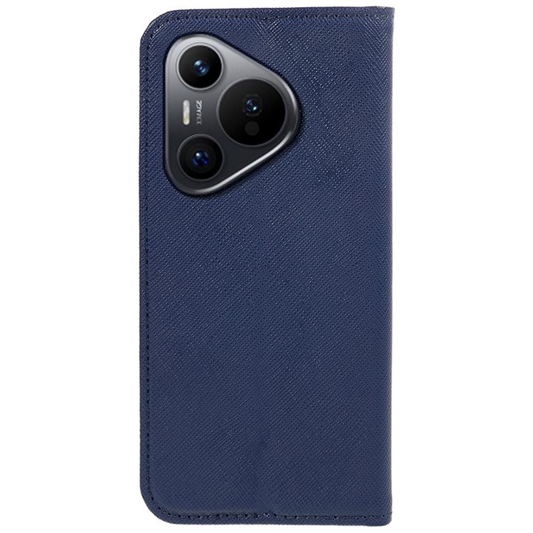For Huawei Pura 70 Case Cross Texture Leather Flip Phone Cover Magnetic Absorption - Dark Blue