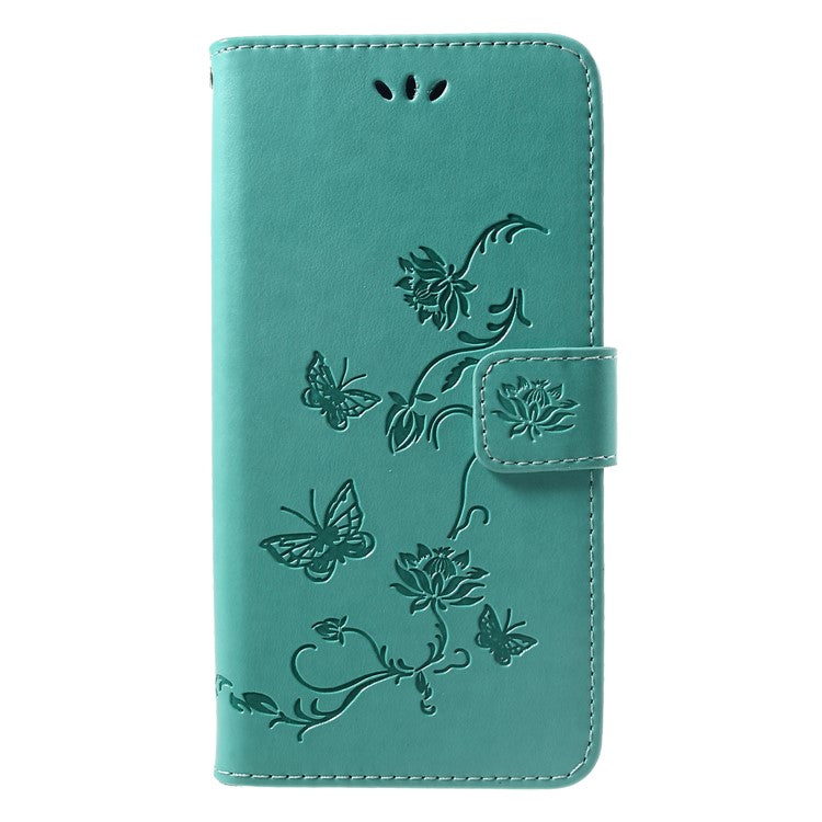 Imprint Butterfly Flower PU Leather Phone Cover Stand Wallet Case for Huawei nova 3i / P Smart Plus - Cyan