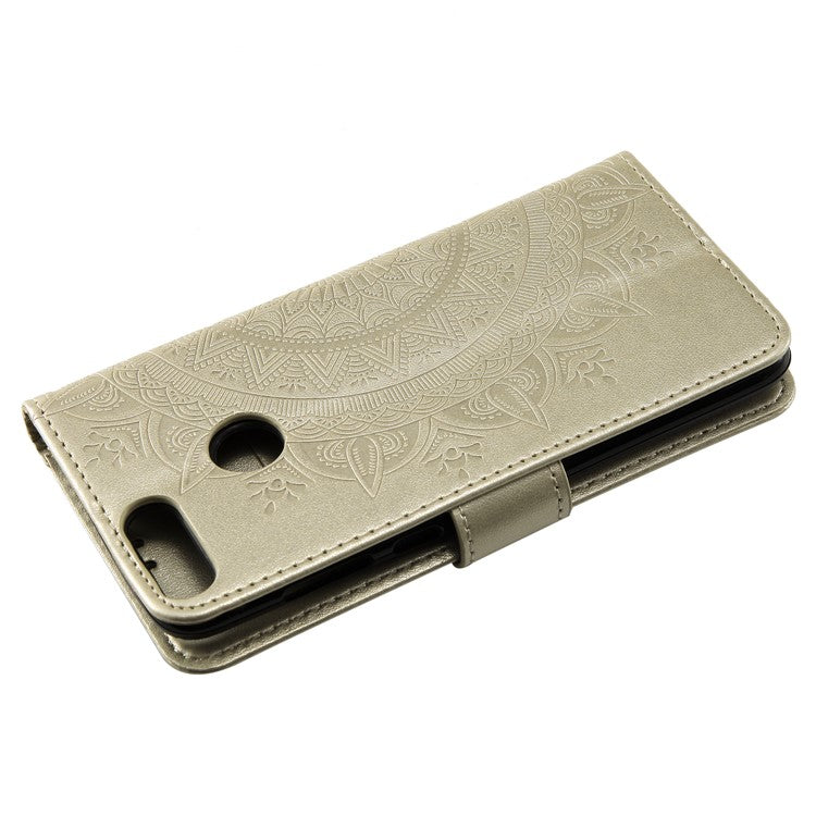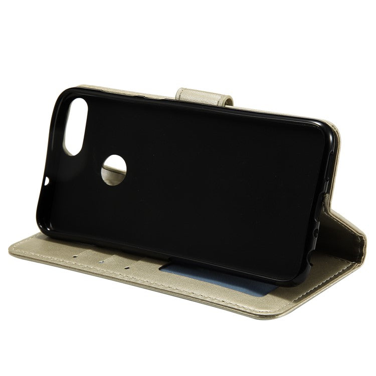 Imprint Butterfly Flower Wallet Leather Stand Case for Huawei P Smart / Enjoy 7S - Champagne Gold