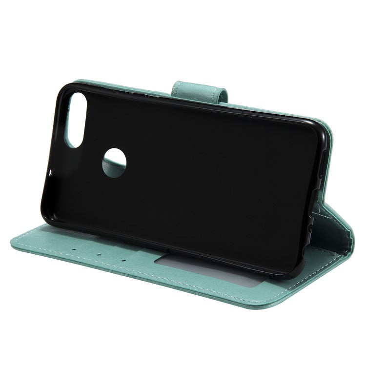Imprint Butterfly Flower Wallet Leather Stand Cover for Huawei P Smart / Enjoy 7S - Cyan