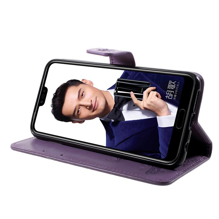 Imprint Butterfly Flowers PU Leather Wallet Case for Huawei Honor 10 - Light Purple