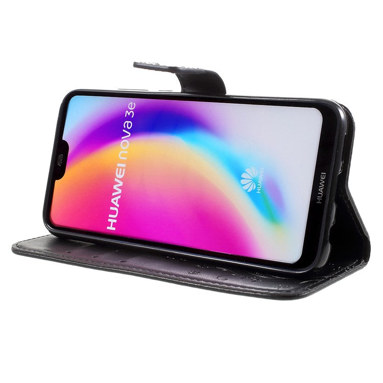Imprint Flower Butterfly Pattern Wallet Leather Casing for Huawei P20 Lite/Nova 3e - Black