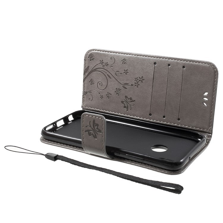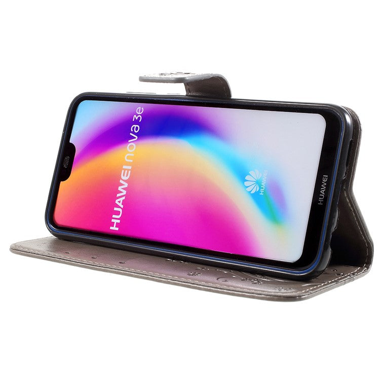 Imprint Flower Butterfly Pattern Wallet Leather Cover for Huawei P20 Lite/Nova 3e - Grey