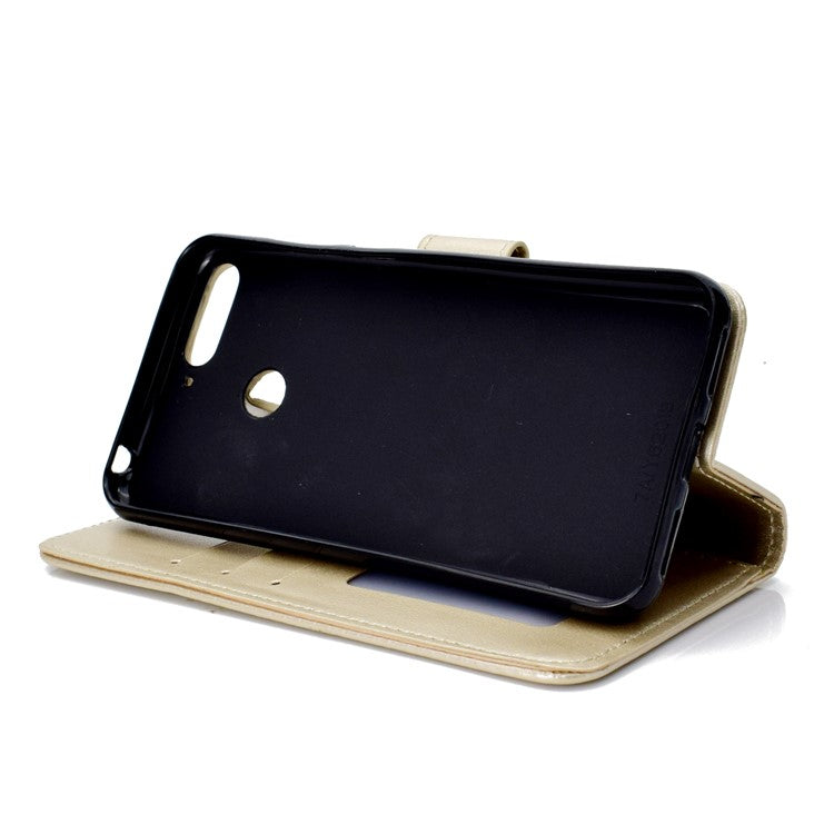 Imprint Mandala Flower Leather Wallet Flip Case Cover for Huawei Y6 (2018) / Honor 7A (without Fingerprint Sensor) - Gold