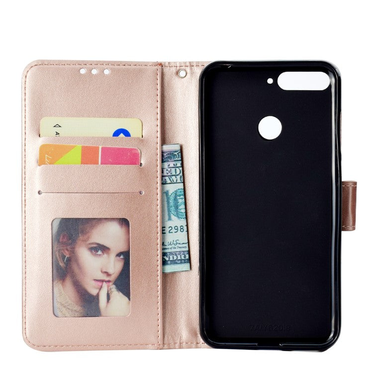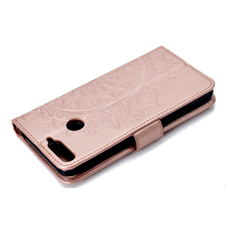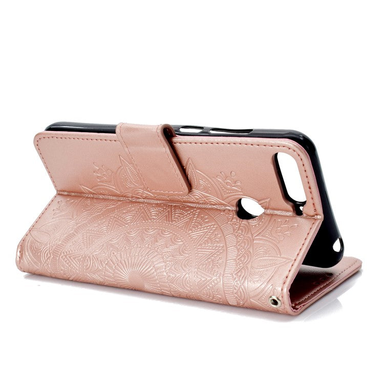 Imprint Mandala Flower Leather Wallet Flip Cover for Huawei Y6 (2018) / Honor 7A (without Fingerprint Sensor) - Rose Gold
