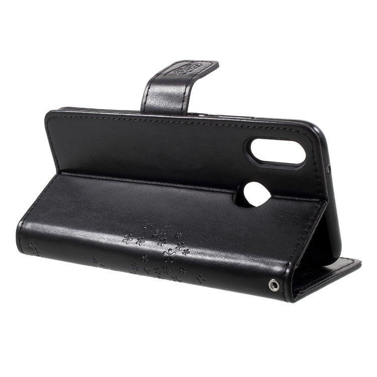 Imprint Tree Owl Pattern Wallet Stand Leather Cover for Huawei P20 Lite / Nova 3e - Black