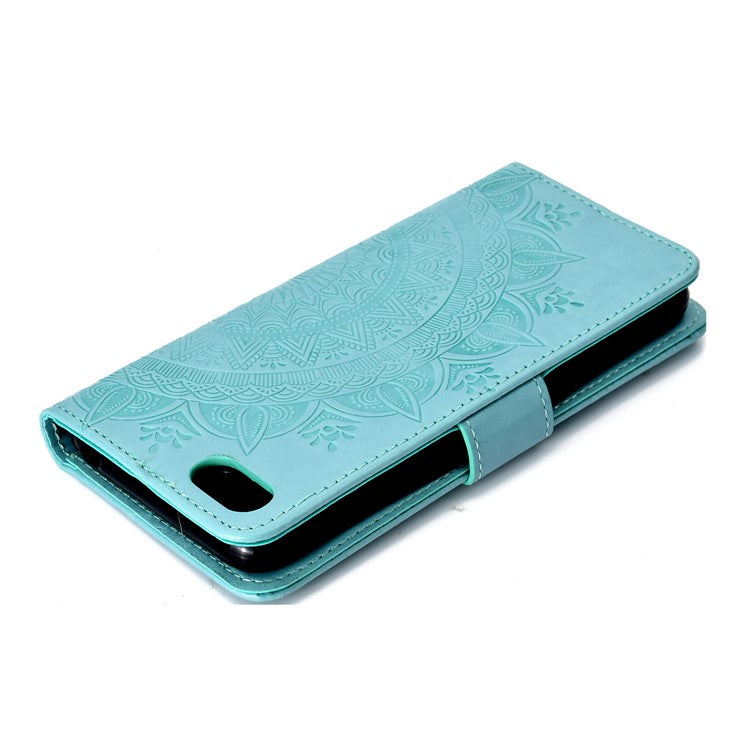 Imprinted Mandala Pattern Wallet Leather Mobile Phone Case for Huawei Y5 (2018) / Y5 Prime (2018) / Honor Play 7 / Honor 7s - Cyan