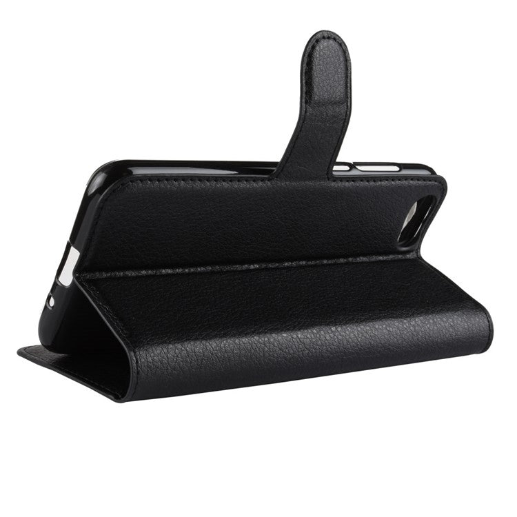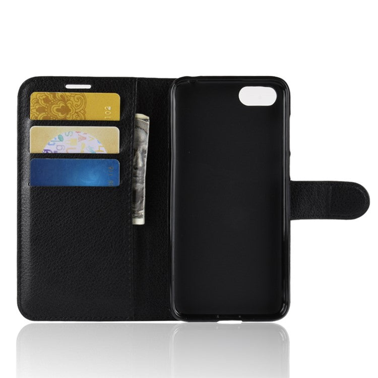 Litchi Skin Wallet Leather Stand Case for Huawei Y5 Prime (2018) / Y5 (2018) - Black