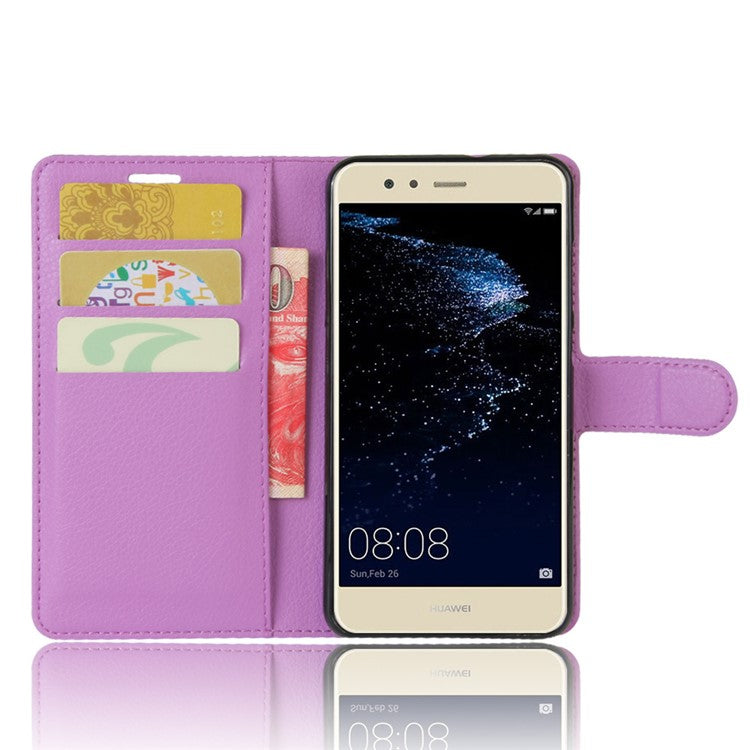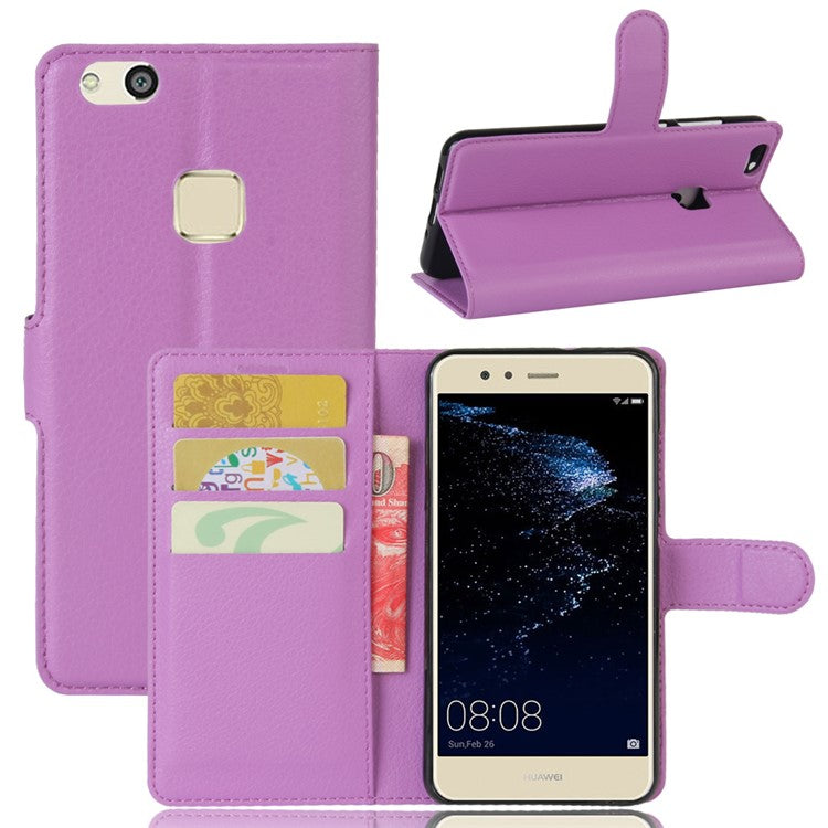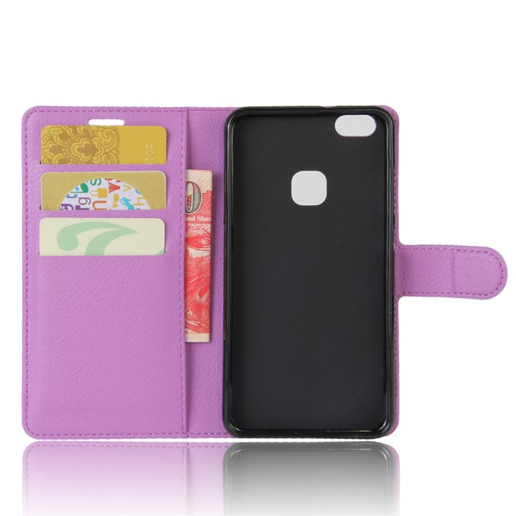 Lychee Litchi Skin Wallet Leather Cover with Stand for Huawei P10 Lite Mobile Cell Phone Accessory - Purple