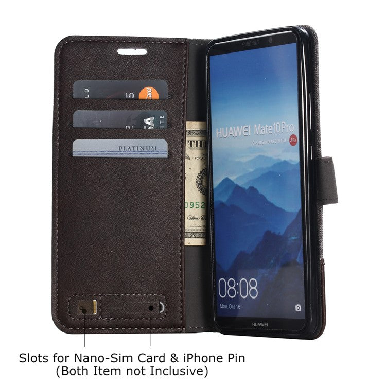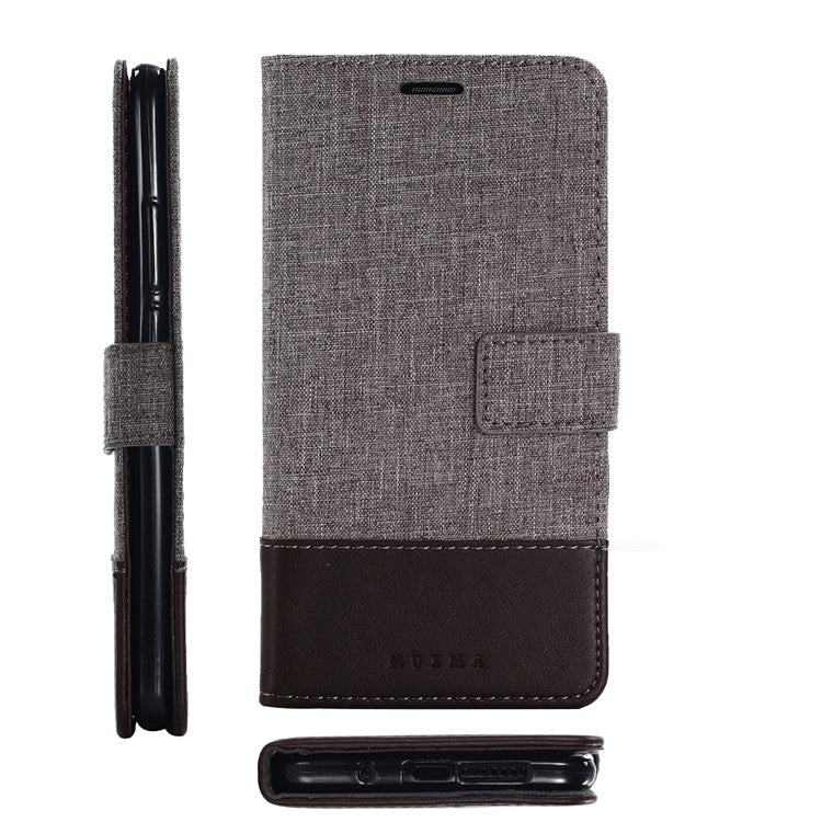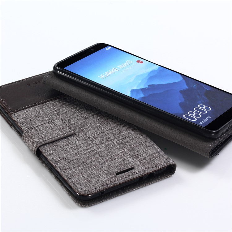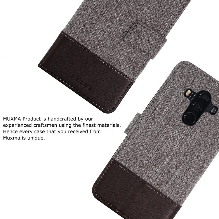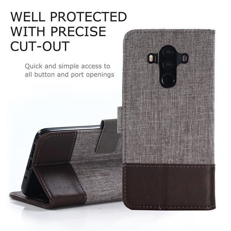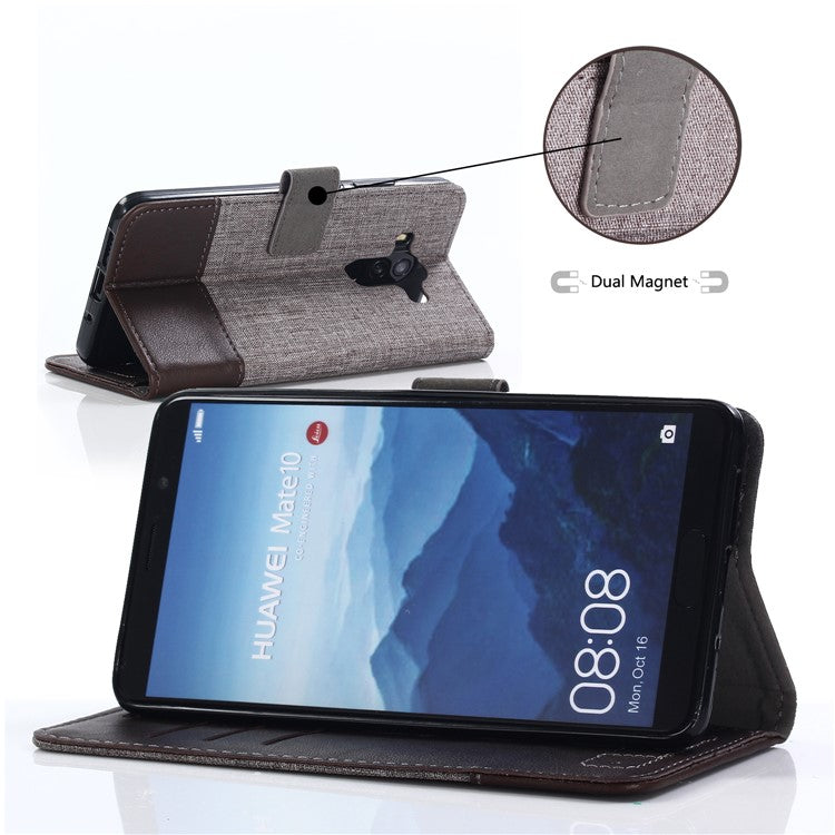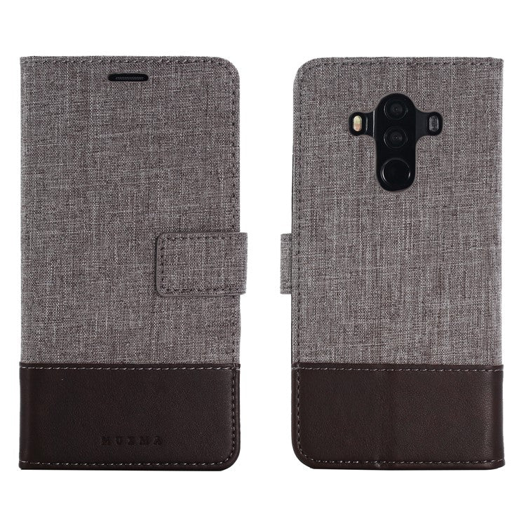 MUXMA Splicing PU Leather Canvas Wallet Phone Shell for Huawei Mate 10 Pro - Brown