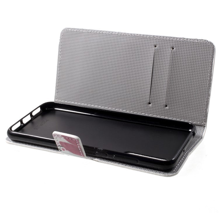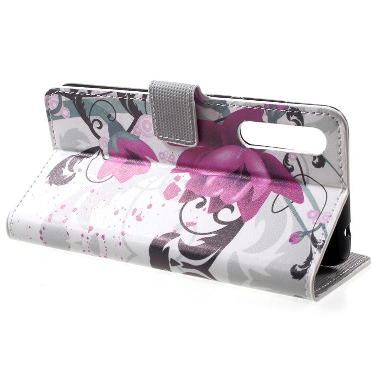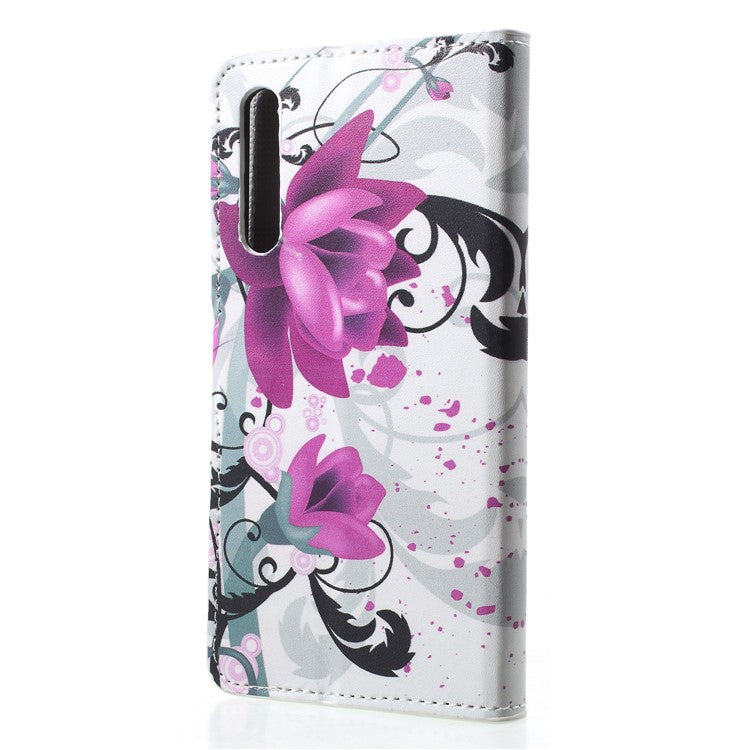 Pattern Printing Card Holder Leather Mobile Case for Huawei P20 - Kapok Flower