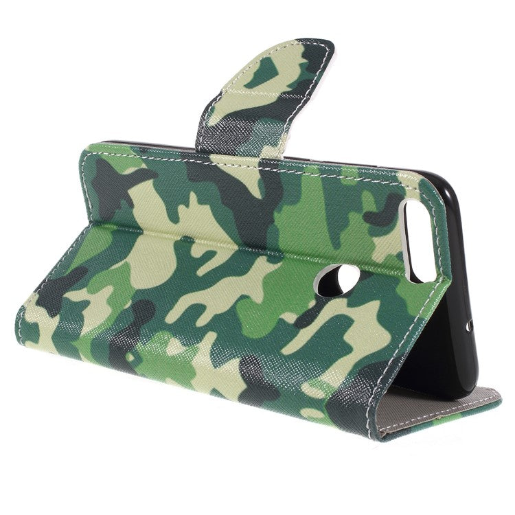 Pattern Printing Cross Grain Wallet Stand PU Leather Case Shell for Huawei P Smart / Enjoy 7S - Camouflage Cloth