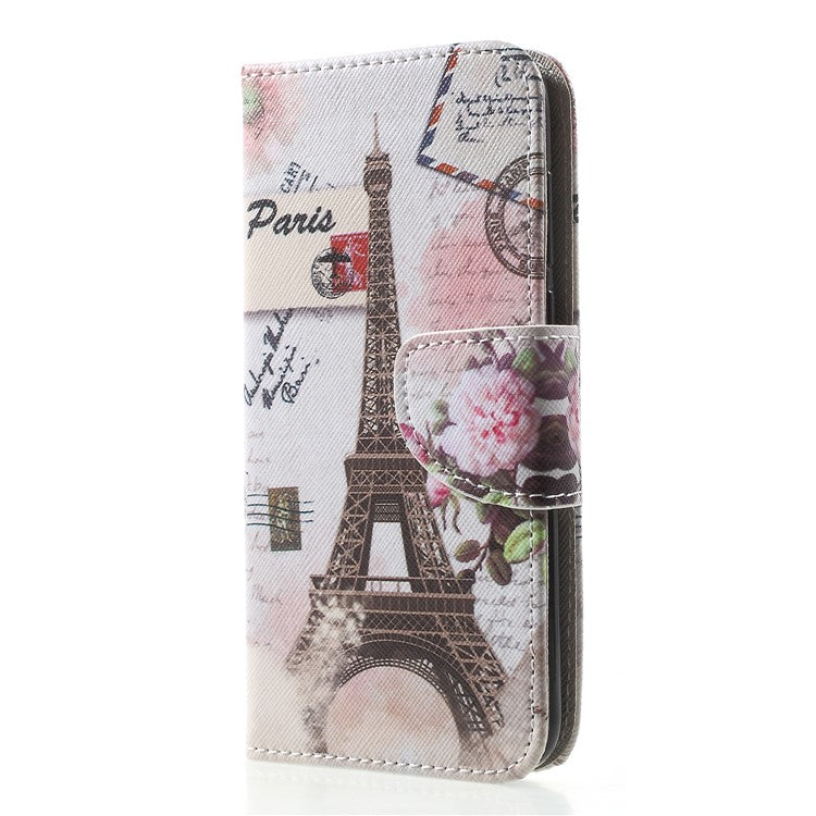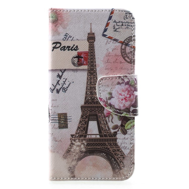 Pattern Printing Cross Texture Leather Wallet Shell Case for Huawei Y5 (2018) - Eiffel Tower
