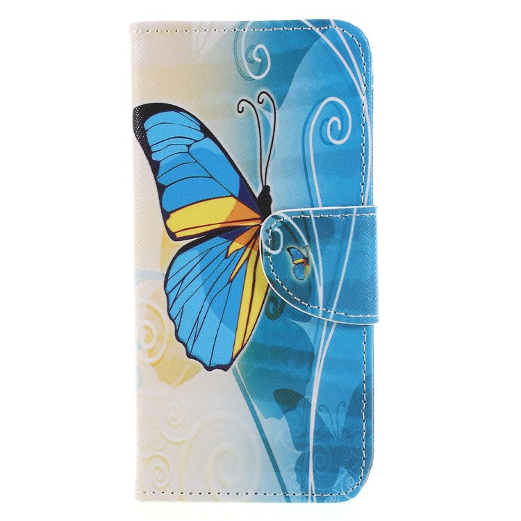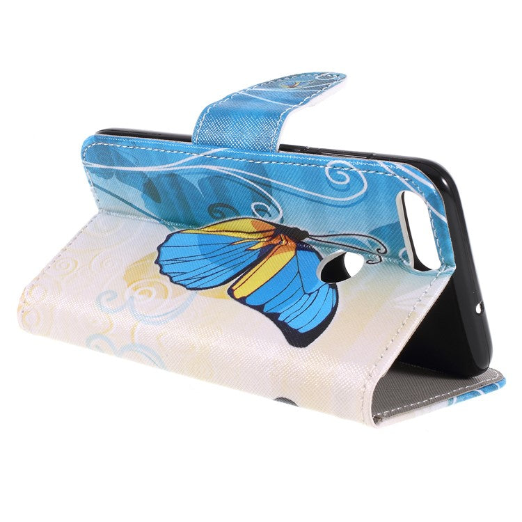 Pattern Printing Cross Texture Stand Wallet Leather Case for Huawei P Smart / Enjoy 7S - Blue and Gold Butterfly