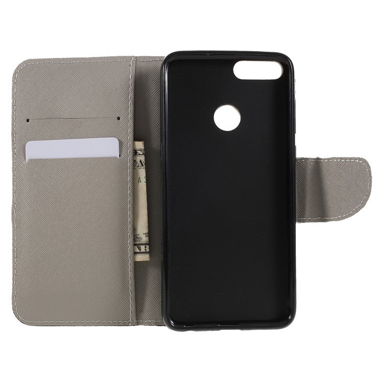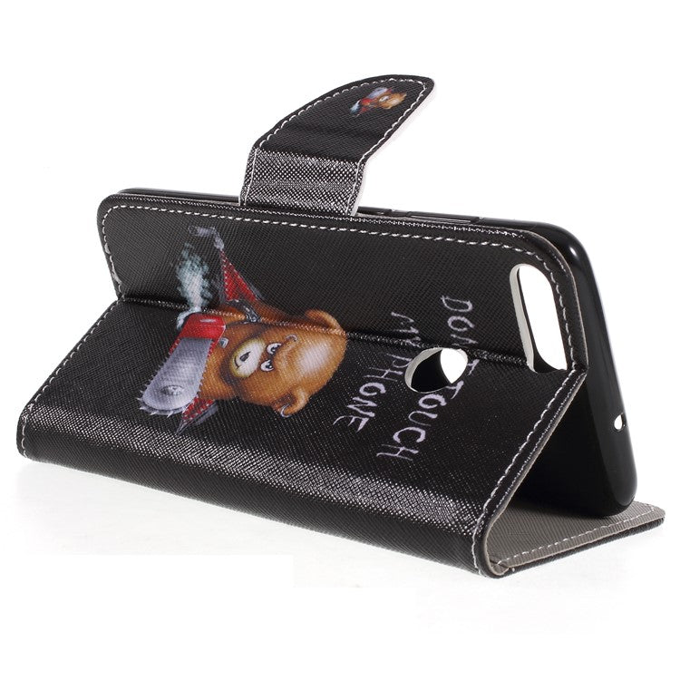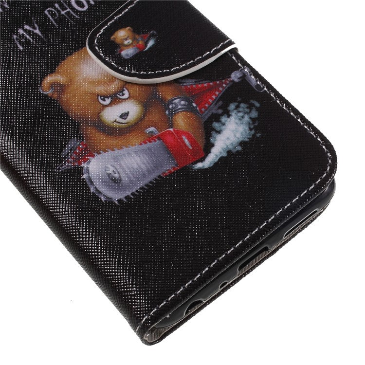 Pattern Printing Cross Texture Stand Wallet Leather Cell Phone Cover for Huawei P Smart / Enjoy 7S - Bear with Saw