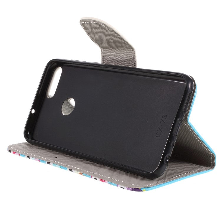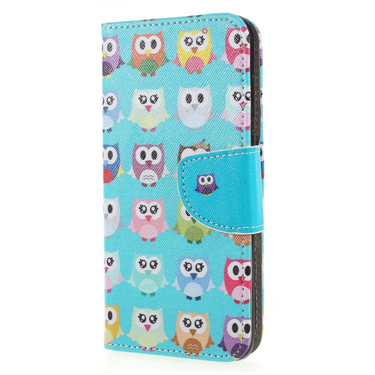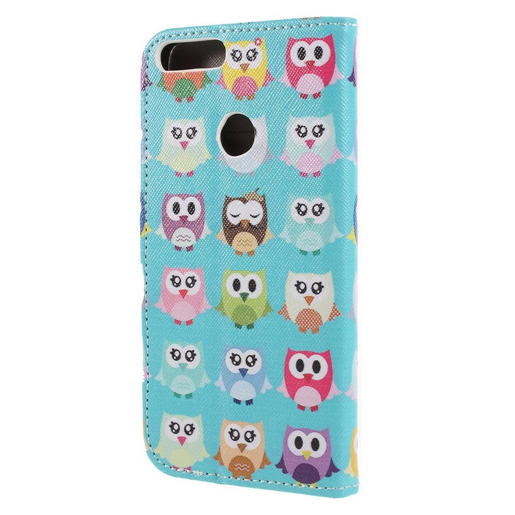 Pattern Printing Cross Texture Stand Wallet Leather Folio Protection Shell for Huawei P Smart / Enjoy 7S - Owl Family Green Background