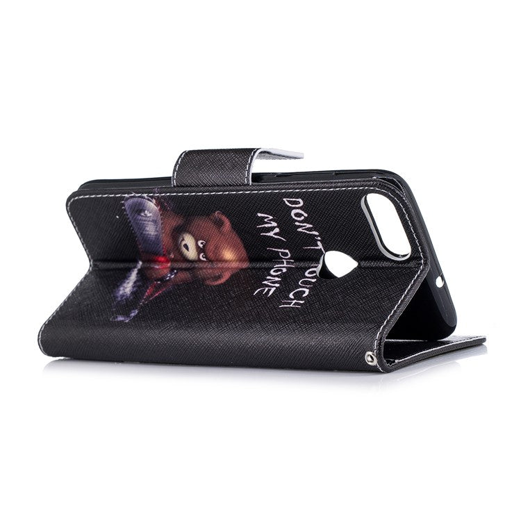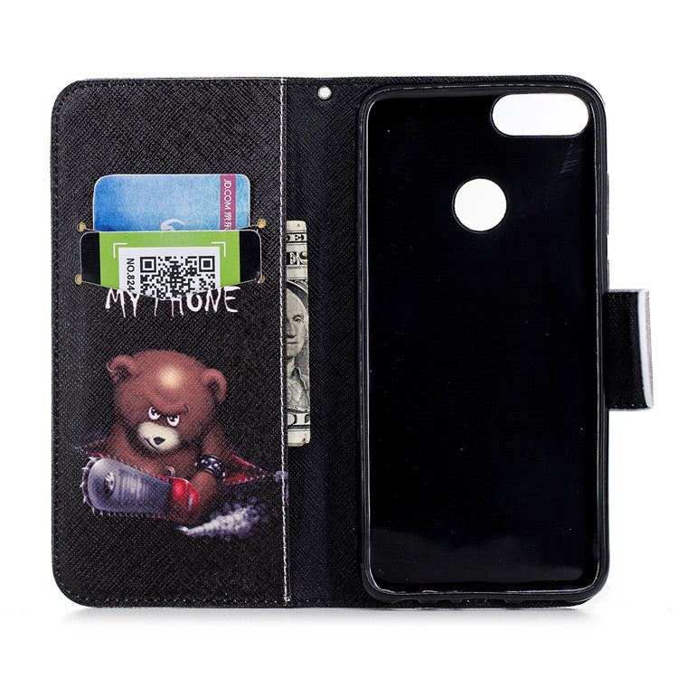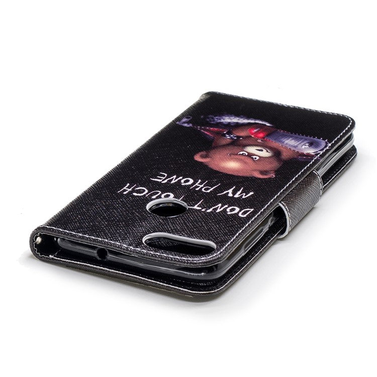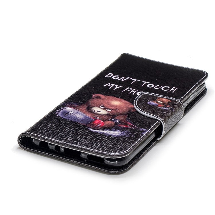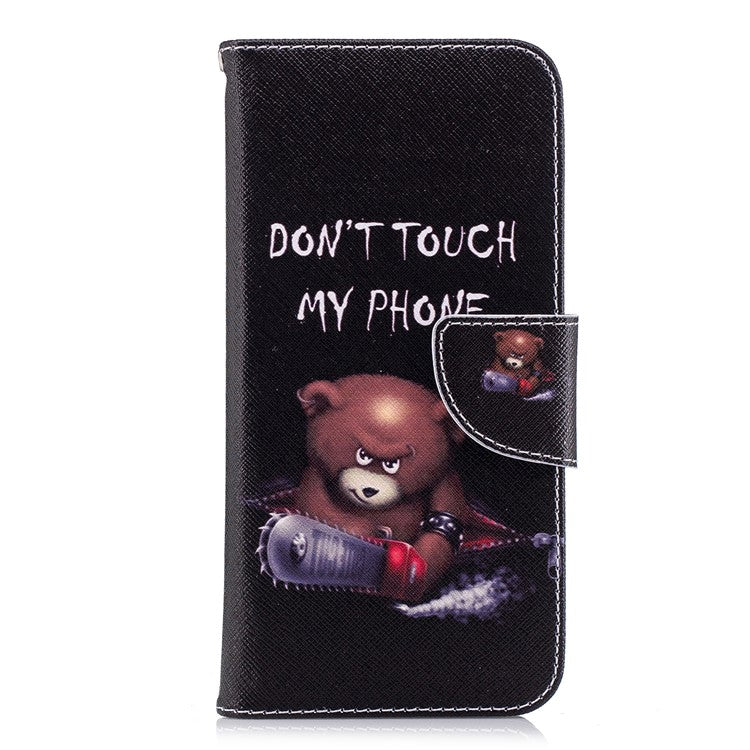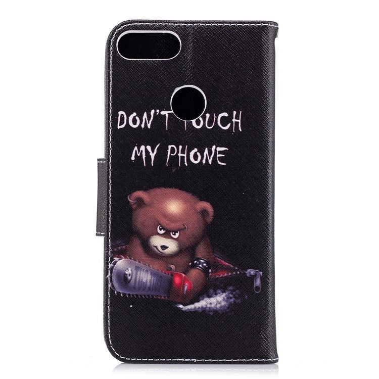 Pattern Printing PU Leather Wallet Stand Cell Phone Shell for Huawei P Smart/Enjoy 7S - Bear and Do not Touch My Phone