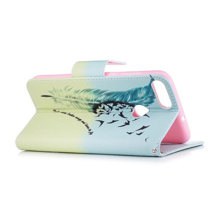 Pattern Printing PU Leather Wallet Stand Mobile Phone Shell for Huawei P Smart/Enjoy 7S - Quill Pen and Birds