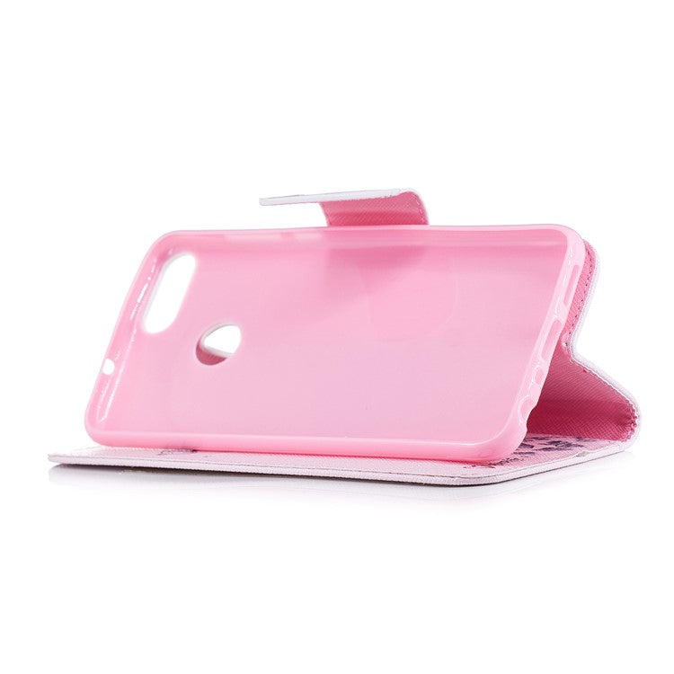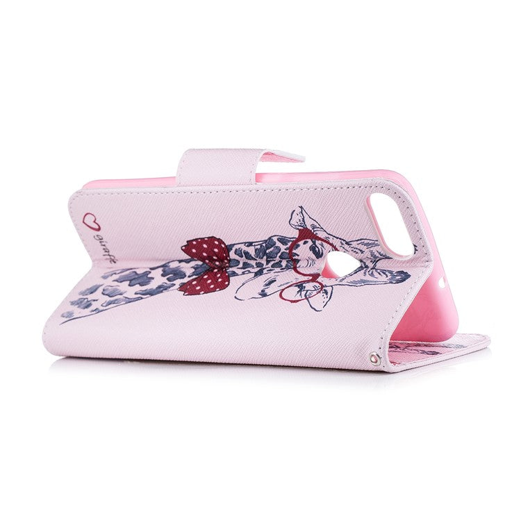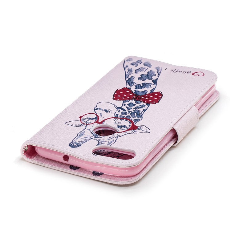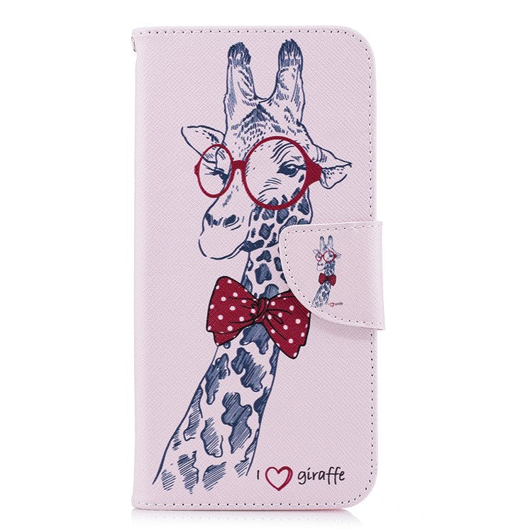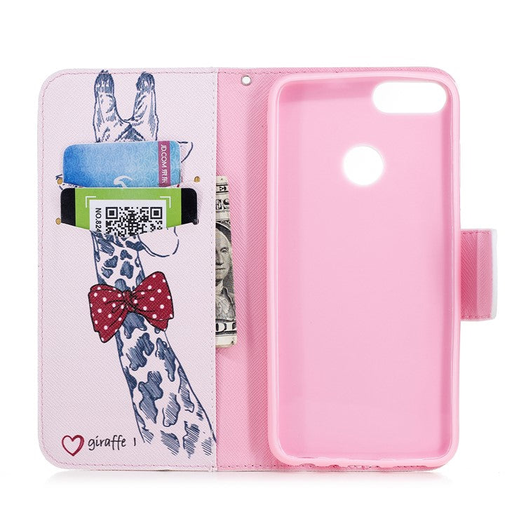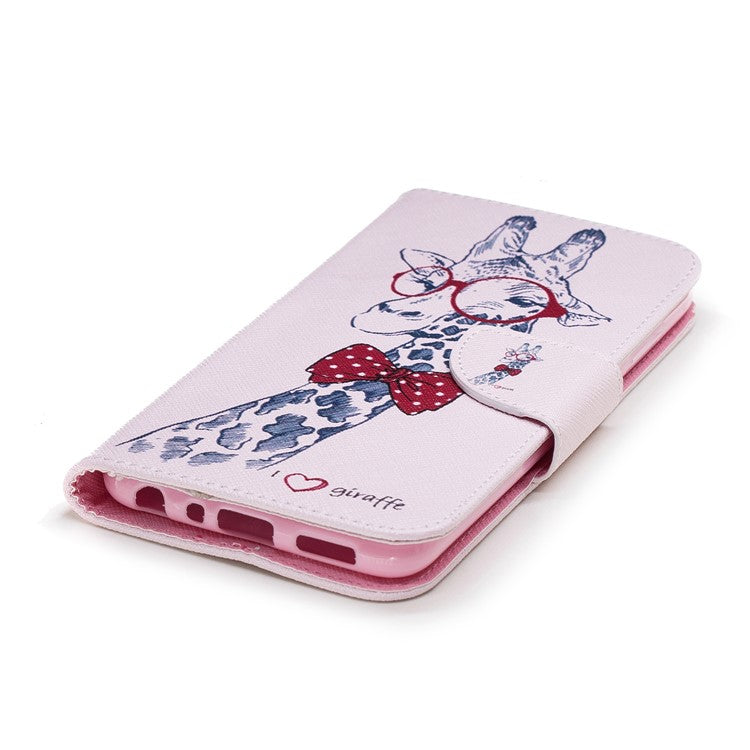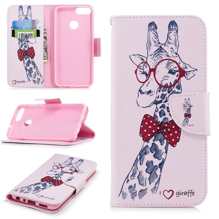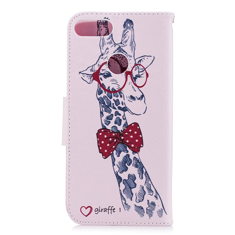 Pattern Printing PU Leather Wallet Stand Protective Shell for Huawei P Smart/Enjoy 7S - Giraffe Wearing Glasses