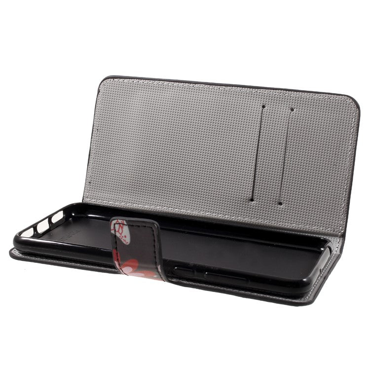 Pattern Printing Wallet Stand Leather Case for Huawei P20 - Butterfly and Flower