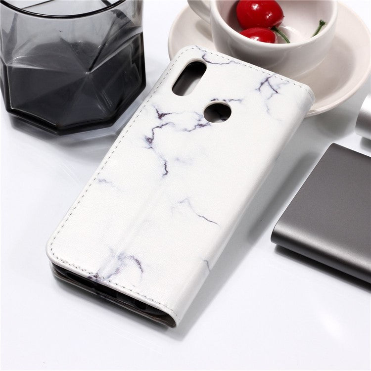 Pattern Printing Wallet Stand Leather Flip Case for Huawei P20 Lite / Nova 3e - White Marble