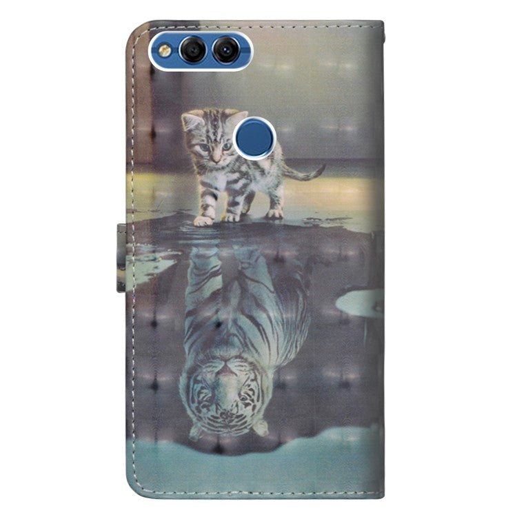 Pattern Printing Wallet Stand PU Leather Folio Accessory Case for Huawei P Smart / Enjoy 7S - Cat