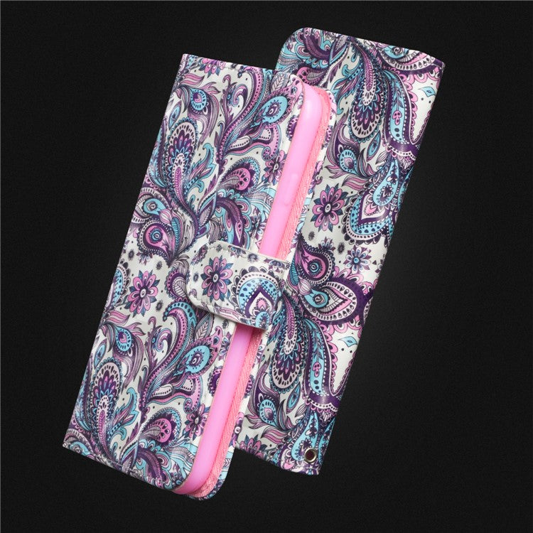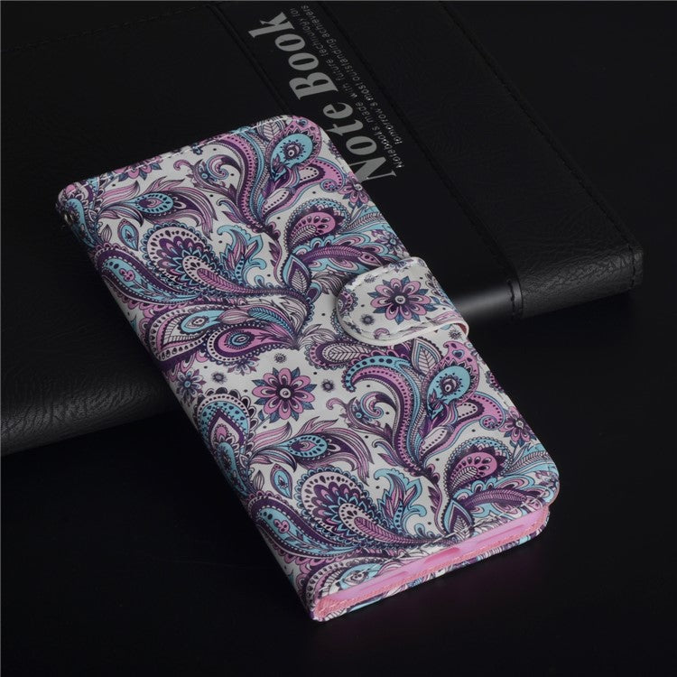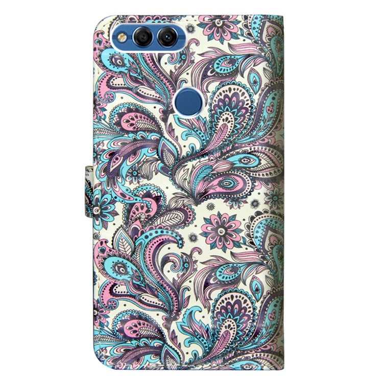 Patterned Leather Wallet Stand Phone Cover Shell for Huawei P Smart / Enjoy 7S - Paisley Flower
