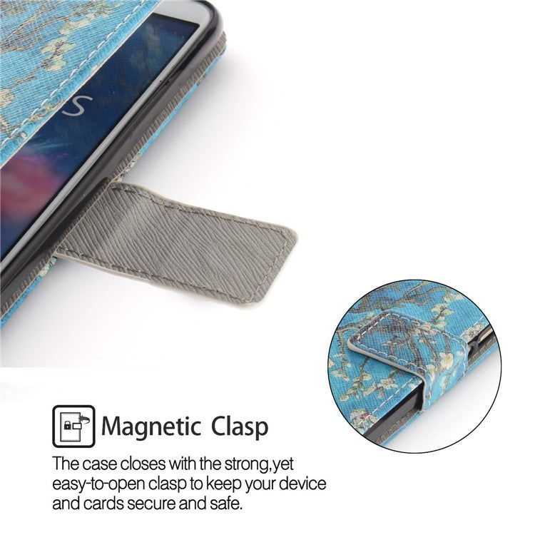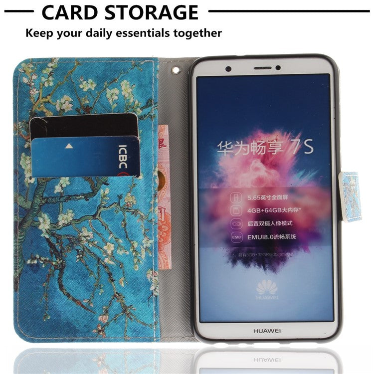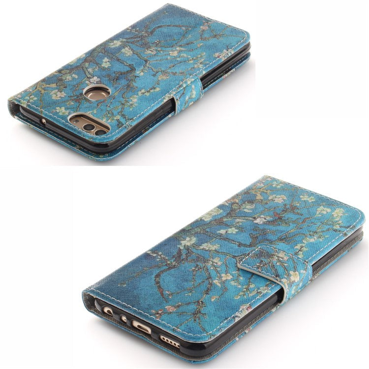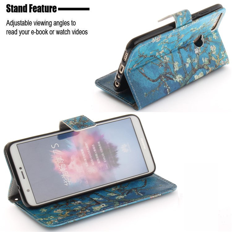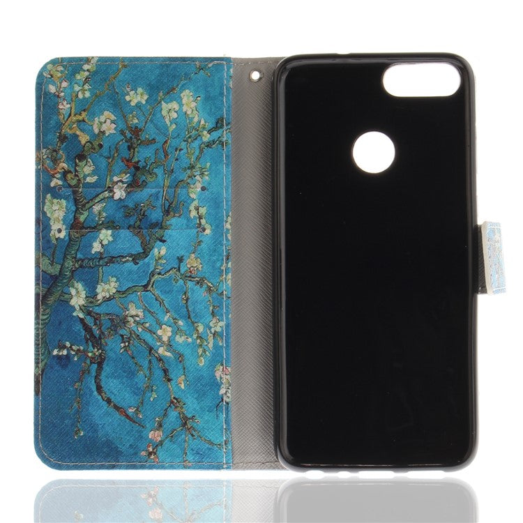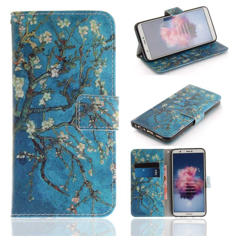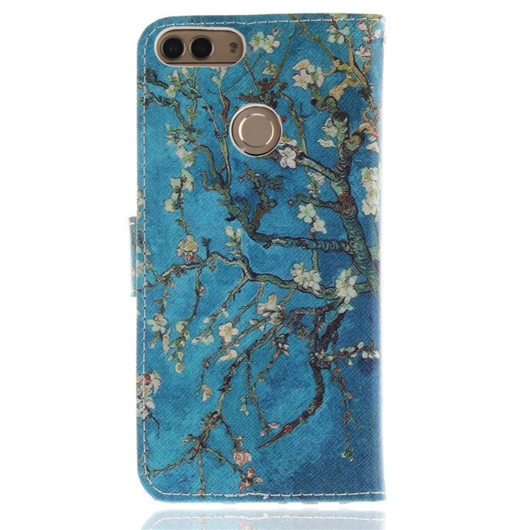 Patterned Wallet Stand PU Leather Shell for Huawei P Smart / Enjoy 7S - Almond Tree in Blossom