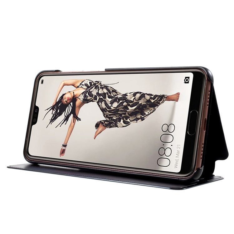 Plated Mirror Surface Leather Phone Folio Cover with Stand for Huawei P20 Pro - Grey