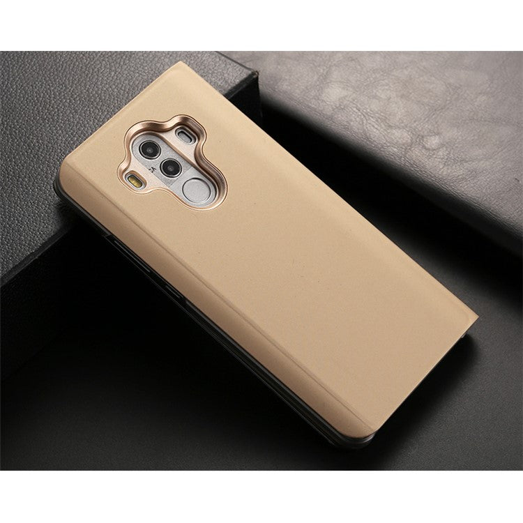 Plated Mirror Surface Leather Stand Cell Phone Casing for Huawei Mate 10 Pro - Gold