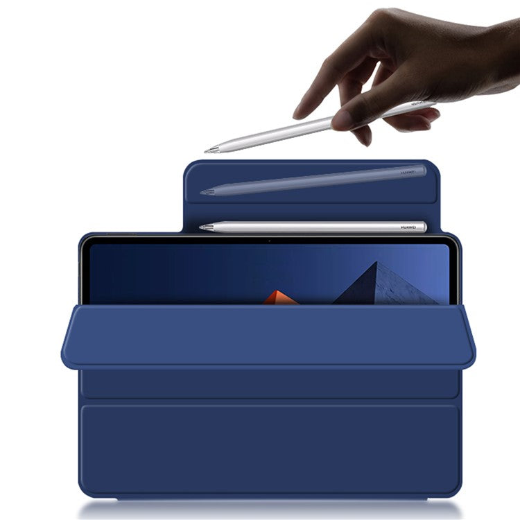 PU Leather Tri-fold Stand Magnetic Closure Tablet Case Cover for Huawei MateBook E 2022 - Blue