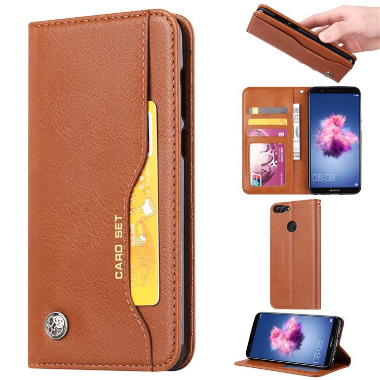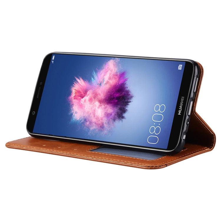 PU Leather Wallet Stand Accessory Case for Huawei P Smart / Enjoy 7S - Brown