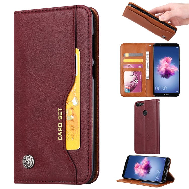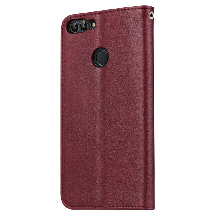 PU Leather Wallet Stand Case for Huawei P Smart / Enjoy 7S - Wine Red