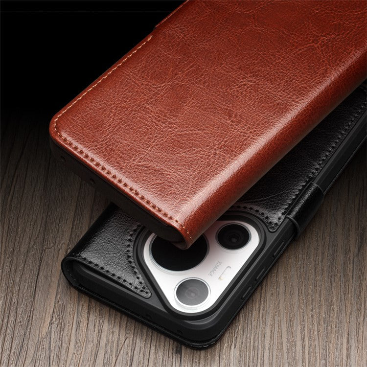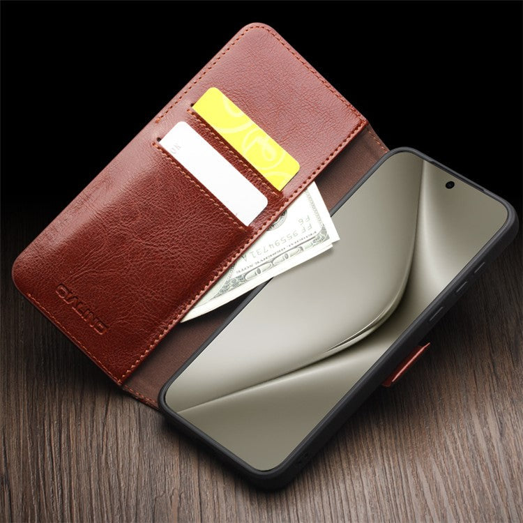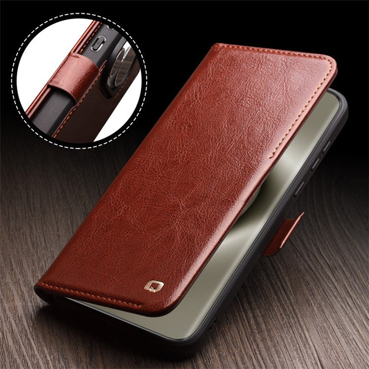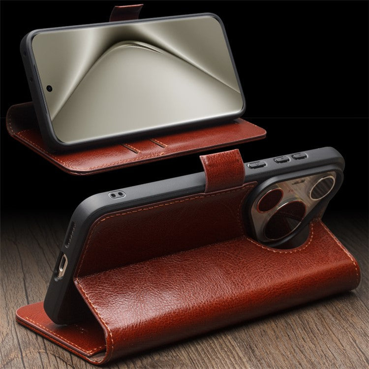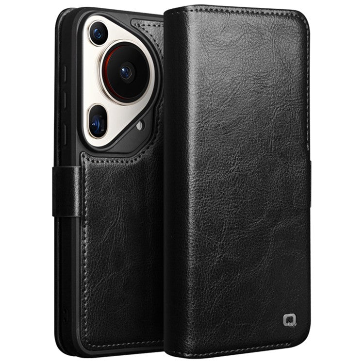 QIALINO For Huawei Pura 70 Ultra Wallet Case Genuine Cow Leather Flip Phone Cover - Black