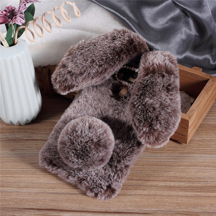 Rabbit Shape Fluffy Fur Coated Rhinestone TPU Protective Case for Huawei Mate 10 Pro - Coffee